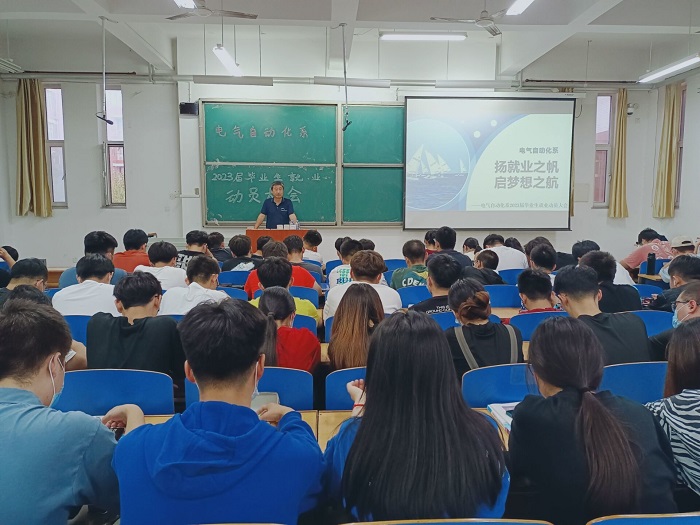 为进一步做好2023届毕业生就业工作,帮助毕业生实现高质量充分就业,电气自动化系于9月27日下午在创新楼C101教室召开2023届本科毕业生就业动员大会。会议由系党总支书记葛洪伟主持,2023届全体毕业生参加了会议。 会...