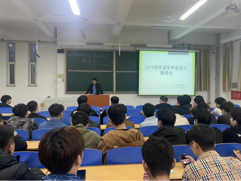 为进一步提高电力工程系2023届本科学生毕业设计质量,按照进度完成教学任务,2023年5月5日,电力工程系在3c104教室召开了毕业设计推进会,会议由李文才主任主持,辅导员高洁铭老师及全体毕业生参会。 会上,李文才主...