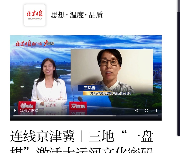 6月16日 ,《北京日报》“行走京津冀、看运河新韵”专栏刊登通讯报道《三地“一盘棋”激活大运河文化密码》,并在客户端“京直播”中视频连线best365官网水利工程系副主任王凤春教授,邀请其就共建大运河文化带功能进行介绍...