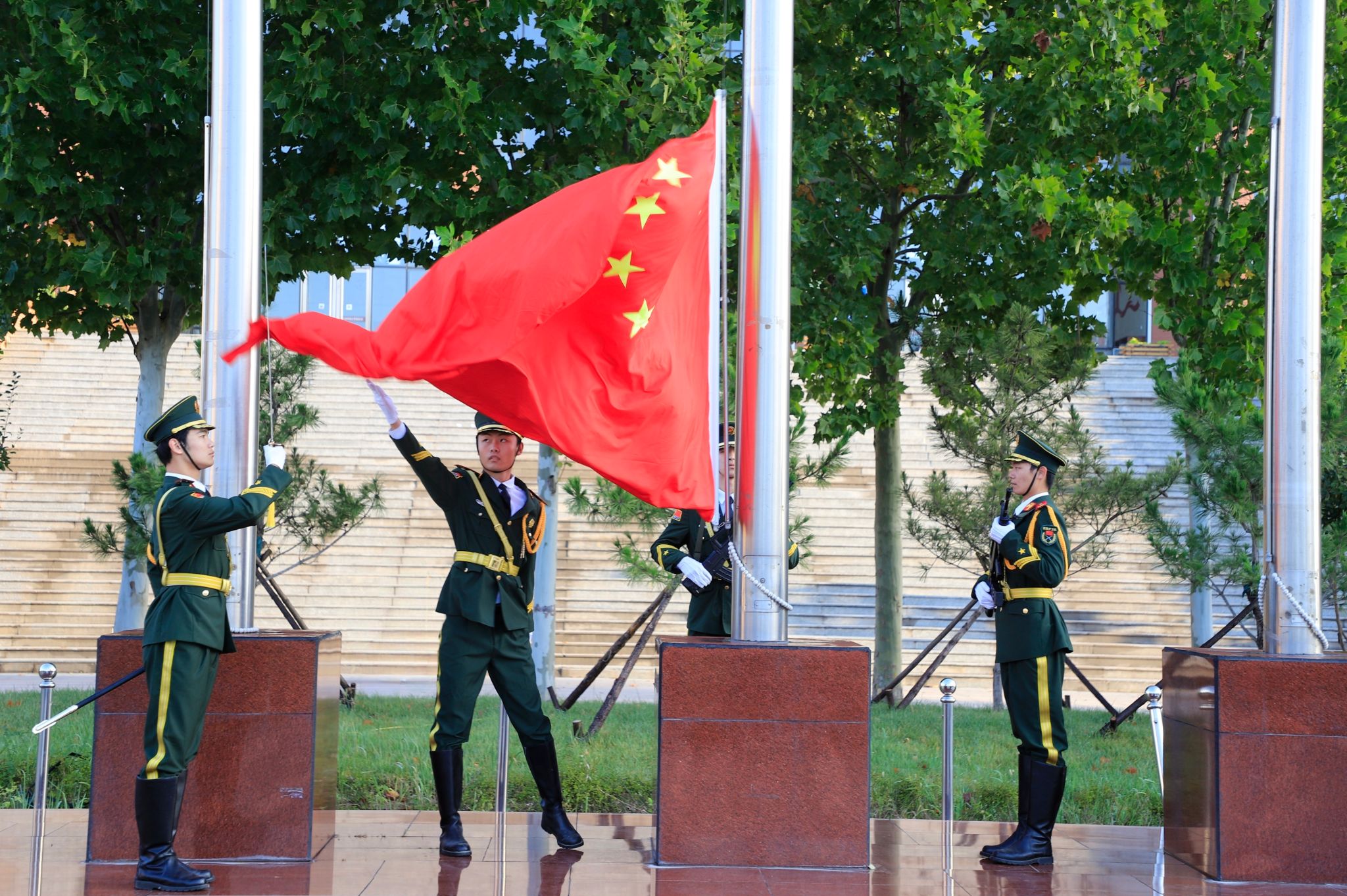 秋风猎猎展红旗,晨曦煌煌贺华诞。为庆祝新中国成立75周年,进一步弘扬爱国主义精神,增强师生爱国意识和民族自豪感,10月1日上午,best365官网隆重举行庆祝新中国成立75周年升旗仪式。党委书记张效松、校长王滨、党委副书记崔立功、副校长于振海、副校长杨凯及师生代表共计1000余人参加了升旗仪式。升旗仪式由校长王滨主持。上午7点,升旗仪式正式开始。国旗护卫队队员迈着铿锵有力的步伐,护卫五星红旗来到升旗台。伴随着雄壮的《义勇军进行曲》...
