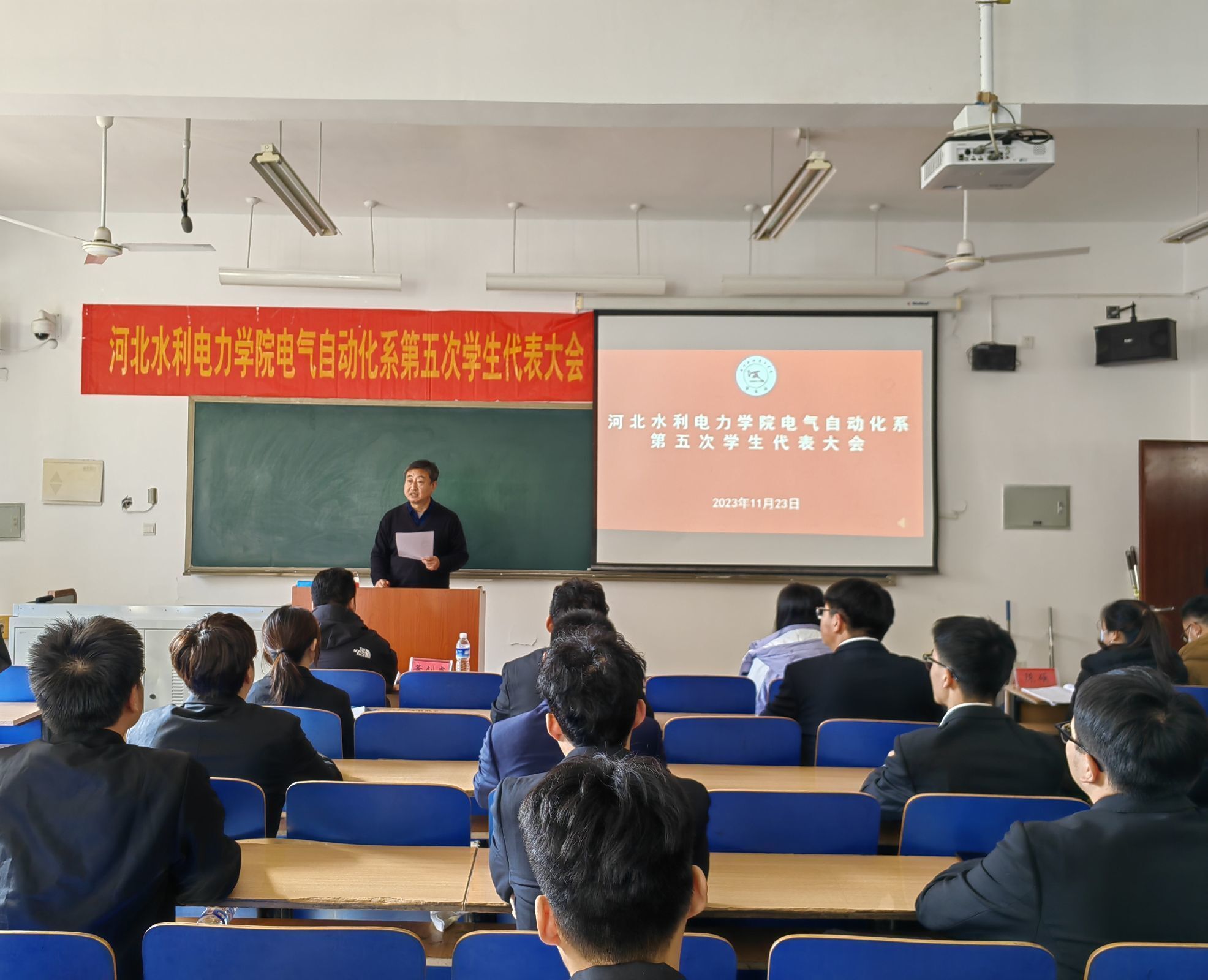 为深入学习宣传贯彻党的二十大精神以及共青团十九大精神,进一步做好学生工作,加强学生会建设,不断提升青年学生组织服务全系学生的桥梁作用,11月23日,电气自动化系于创新楼举行第五次学生代表大会。本次大会由系学生会主席秦炳炎主持,党总支书记葛洪伟出席会议并讲话,系团委书记张宁、全体辅导员老师及四十余位学生代表参加会议。大会预备会上,主持人秦炳焱同学汇报了大会前期筹备工作情况,学生代表们审议通过了代表资格审查报告、...