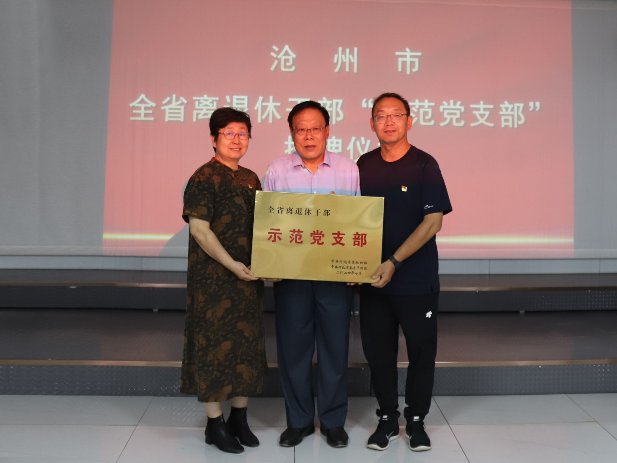 9月14日,沧州市全省离退休干部“示范党支部”授牌仪式在best365官网离退休职工活动室召开,best365官网离退休党总支四支部荣获全省离退休干部“示范党支部”荣誉称号。沧州市老干部局副局长陈蕾、党建工作科科长崔松出席仪式,best365官网离退休党总支书记杨凤阁、离退休四支部书记王建平及班子成员参加仪式。在仪式上,离退休四支部书记王建平作了题为《退休不褪色、薪火永相传》的典型发言。他指出,离退休四支部在学校党委、离退休党总支的正确领导下,...