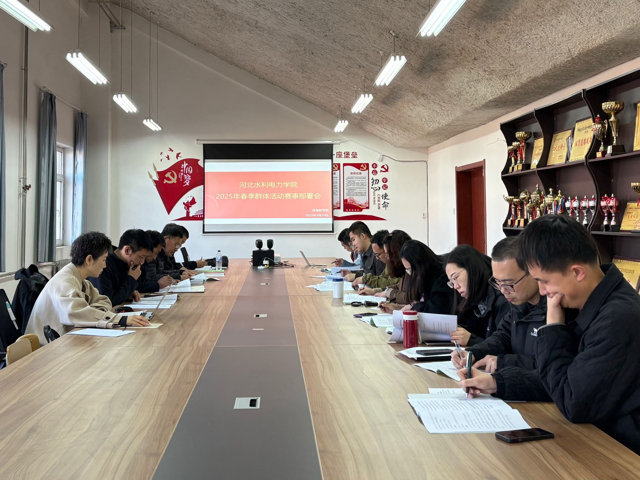 为深入贯彻落实“健康第一”的校园体育理念,统筹推进本学期学生群体活动高质量发展,3月20日上午,体育教学部在体育场会议室举行了2025年春季群体活动赛事部署大会。大会由体育教学部主任周保国主持,各系负责人参加了会议。会议以“规范流程、参与广泛、育人实效”为主线,重点研讨了本学期学生群体赛事的整体安排。周保国首先宣读了best365官网本学期学生群体赛事的活动安排,对即将开展的第八届男子足球联赛和第七届体育运动会进行了详细介绍,...
