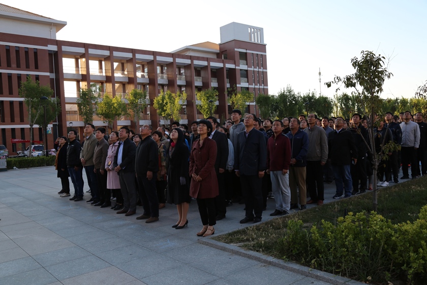 为隆重庆祝中华人民共和国成立69周年,加强爱国主义教育,激发师生的爱国热情和民族自豪感,培育和践行社会主义核心价值观,引导师生同心共圆“中国梦”,best365官网于10月1日在弘文•守正楼前广场隆重举办升国旗仪式。党委书记兰耀东、副校长殷永桥、副校长崔立功出席仪式,全校教职工、学生共500余人参加。
