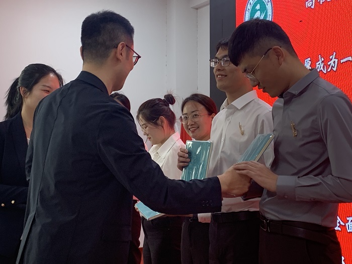 入职仪式上,学生工作部副部长路鹏宣读了新任职辅导员名单。五位新任辅导员依次上台,她们集体高举右拳,庄严宣誓“志愿成为一名高校辅导员,为培养德智体美劳全面发展的社会主义建设者和接班人而努力奋斗!”。宣誓后,由我院老辅导员为新任辅导员佩戴“麦穗”徽章,学生工作部为新任辅导员颁发“辅导员工作日志”、“学生成长记录”。教育因爱而精彩,教育因爱而升华,麦穗寓意着我院辅导员将会把爱的种子播种在学生的心中,在日常工作中也将会把学生的成长记在本上、记在心里。仪式中,姜鸥、张晓雨分别作为新老辅导员代表发言,他们立志为学院贡献力量,为党和国家培育合格的栋梁之才。最后,路鹏代表学生工作部进行讲话,对新入职辅导员表示热烈的欢迎,并指出2023年学院将会在上一年度辅导员理论培训的基础上,继续开展辅导员素质能力综合培训,将会以新入职、骨干、精英辅导员为重点,将“校外优质资源请进来,校内优秀辅导员送出去”,以训领学、以赛促练,持续推进我院辅导员队伍素质能力提升。