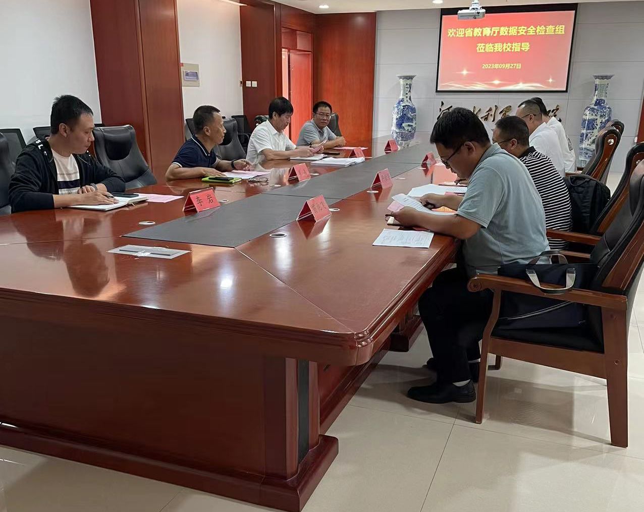9月27日,河北省教育厅网络数据安全检查组一行4人莅临best365官网检查指导网络数据安全工作。现代教育技术中心主任李光,副主任崔晶及相关人员参加会议。