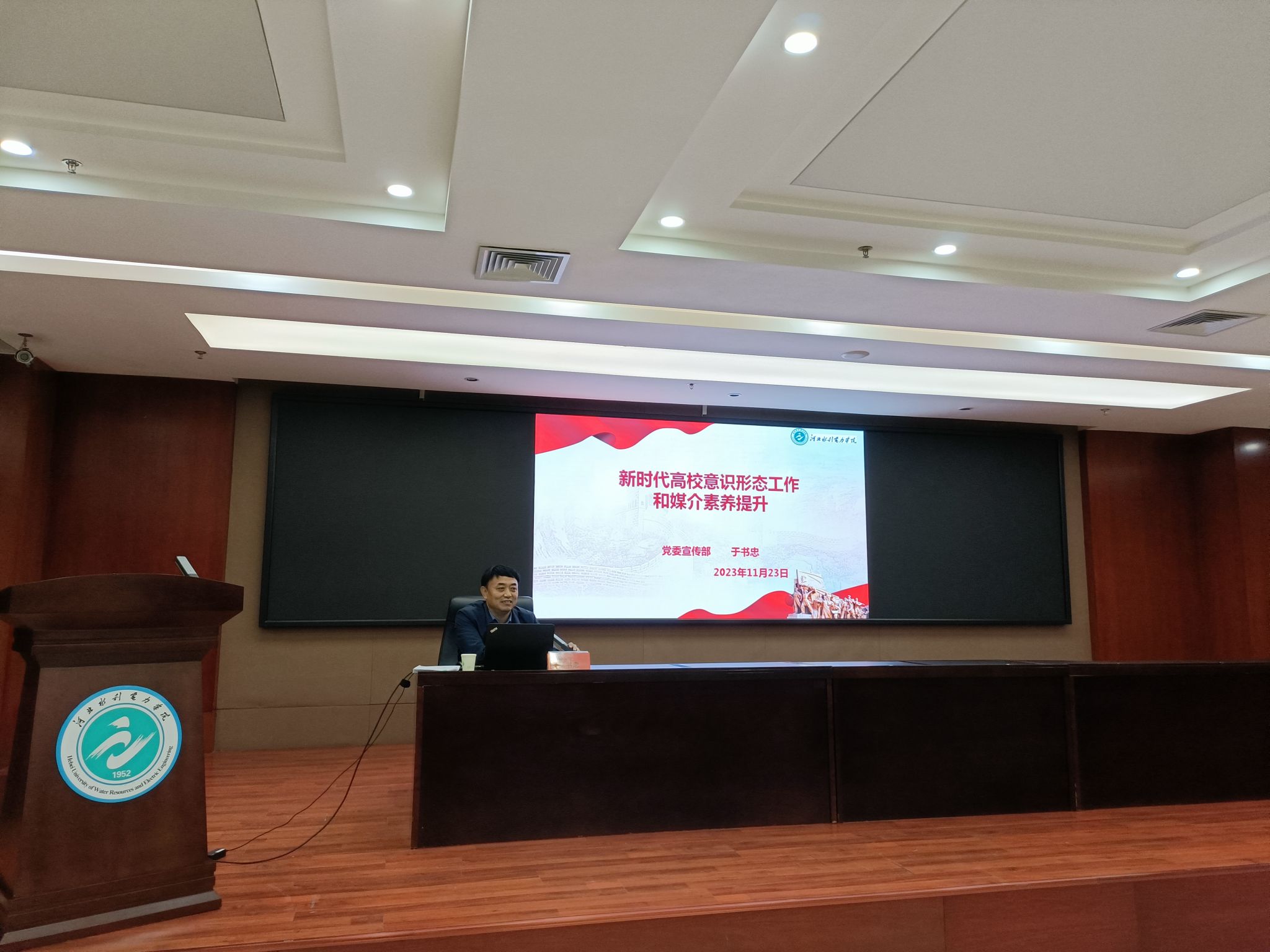 为培养新入职教师依法执教、廉洁从教意识,提升媒介素养,进一步加强职业道德教育,best365官网于11月23日下午在弘文•守正楼9楼报告厅举办了2023年新入职教师培训专题讲座。讲座分为“依法执教与高校教师职业风险防范”、“新时代高校意识形态工作和媒介素养提升”、“遵守党纪监察法规,担当廉洁从教使命”三个专题,分别邀请了沧州师范学院政史学院副院长霍凤娥、best365官网党委宣传部部长于书忠和纪委副书记李昕欣担任主讲。