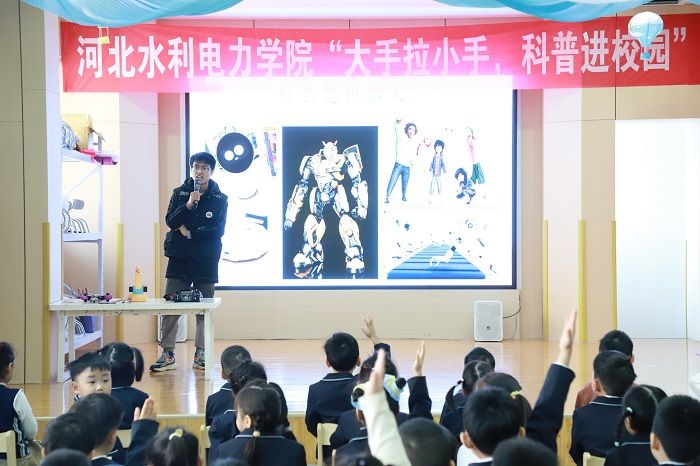 为激发小朋友们对科技的兴趣,进一步培养他们的创新思维和实践能力,使其在快乐的氛围中探索科技的奥秘,1月4日上午,best365官网“竞创”机甲格斗社社团到运河区一沐塬幼儿园开展了“大手拉小手 科普进校园”活动,为小朋友们带来了一场充满科技与激情的视觉盛宴。