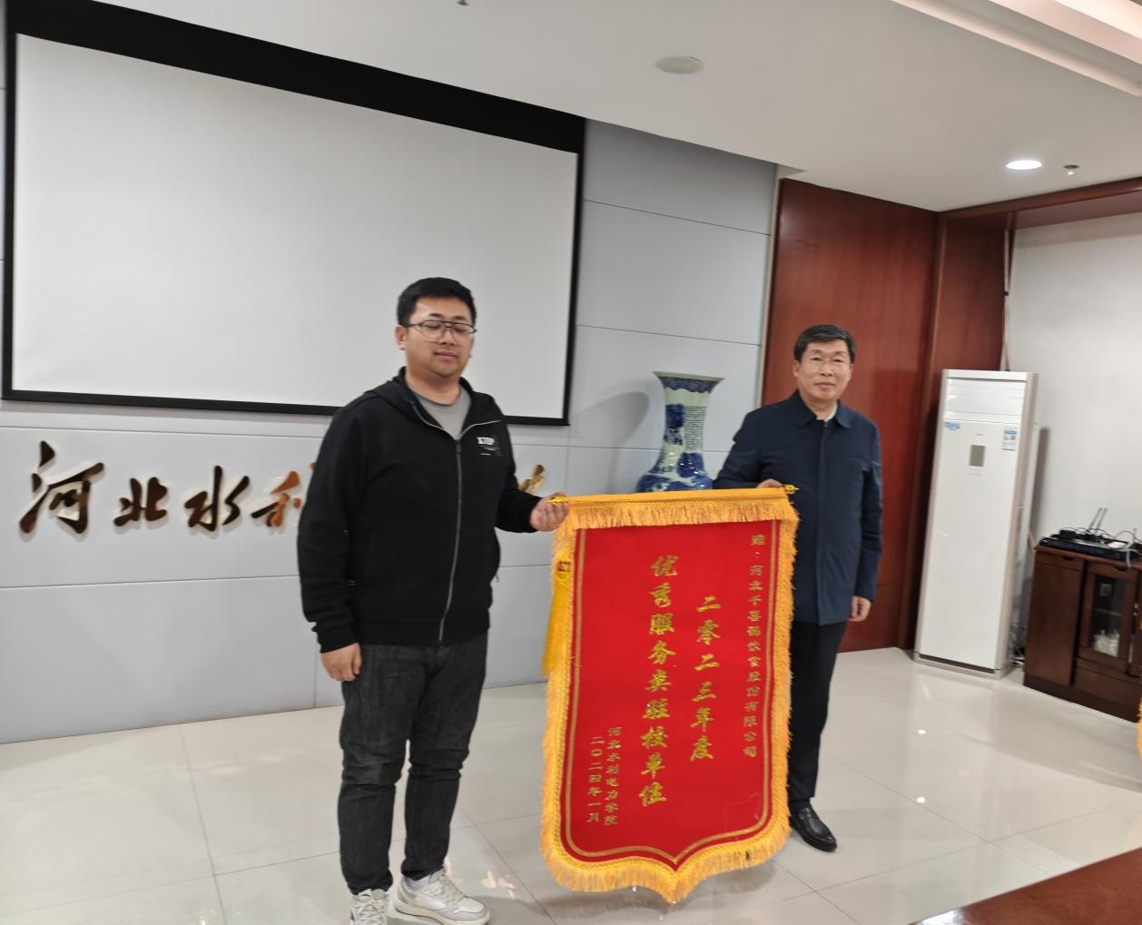 最后,于振海为3家先进驻校服务单位颁发了锦旗。