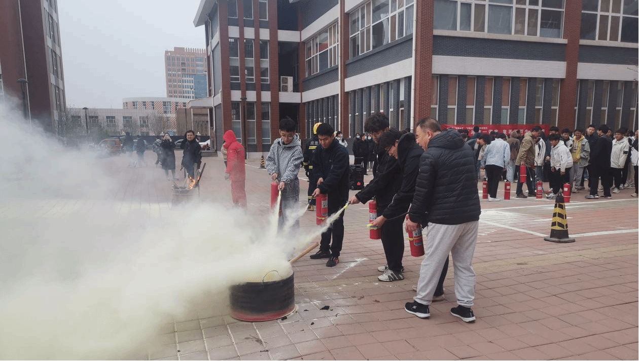 点评结束后,赵江奎和8名消防员通过解说和现场演示的方式为师生员工详细讲解了灭火原理、四种灭火方法、灭火器的种类和使用方法,随后,全体参演人员使用灭火器进行了灭火。