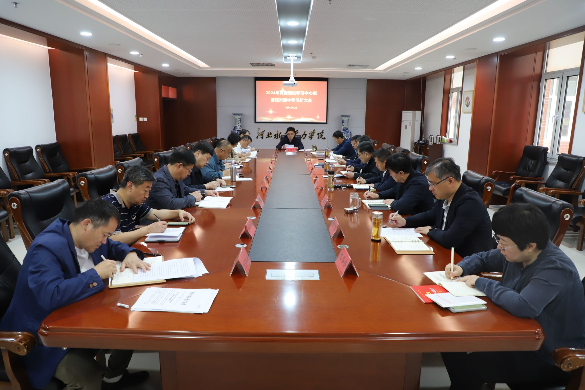 4月24日上午,best365官网召开2024年党委理论学习中心组第四次集中学习扩大会,集中学习习近平总书记关于党纪学习教育的重要讲话精神以及中央有关部署要求、《中国共产党纪律处分条例》第一编总则。党委书记张效松主持会议并讲话,党委理论学习中心组全体成员以及各系党总支书记参加会议。