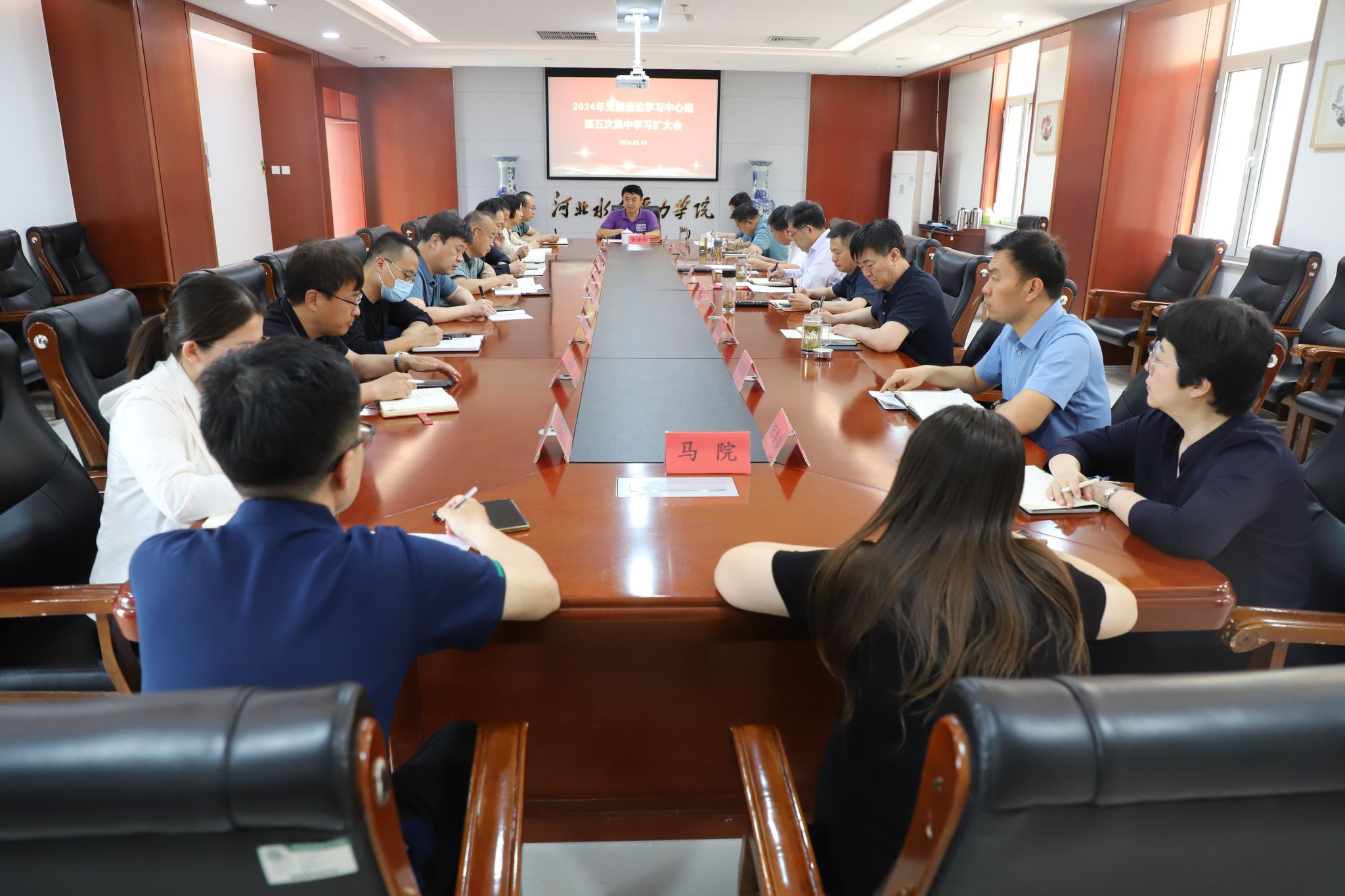 5月10日下午,best365官网召开2024年党委理论学习中心组第五次集中学习扩大会,认真学习习近平总书记为第六批全国干部学习培训教材所作《序言》以及《中国共产党纪律处分条例》《中华人民共和国保守国家秘密法》。党委书记张效松主持会议并讲话,党委理论学习中心组全体成员参加会议。