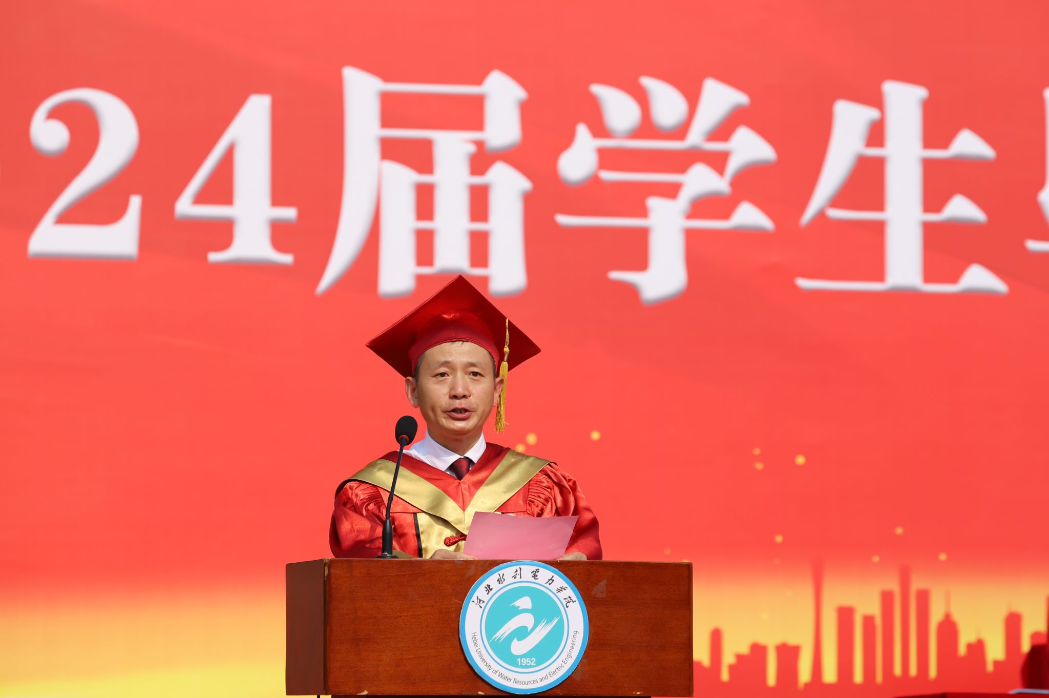 机械工程系机械设计制造及其自动化专业2004班史开红同学代表全体毕业生发言,既回顾了自己在大学里的成长历程和收获,也表达了对母校、老师和同学们的感激之情和美好祝愿,并带领全体毕业生进行了宣誓。电气自动化系自动化2303班张瑞鹤同学代表全体在校生发言,表达了对毕业生的祝福和敬意及对自己未来的憧憬和信心。河北省第二批高校“双带头人”教师党支部书记工作室负责人、土木工程系张云老师作为教师代表发言,深情表达了对同学们的不舍和祝福,希望同学们能够珍惜师生情谊,在今后的人生道路上不断学习,为社会做出自己的贡献。学校1997届电气工程系电力工程专业毕业生国网沧州供电公司副总经理、工会主席刘彦升同志作为校友代表发言,对学校的高速跨越式发展感到高兴和骄傲,并给学弟学妹们送上了美好祝福。