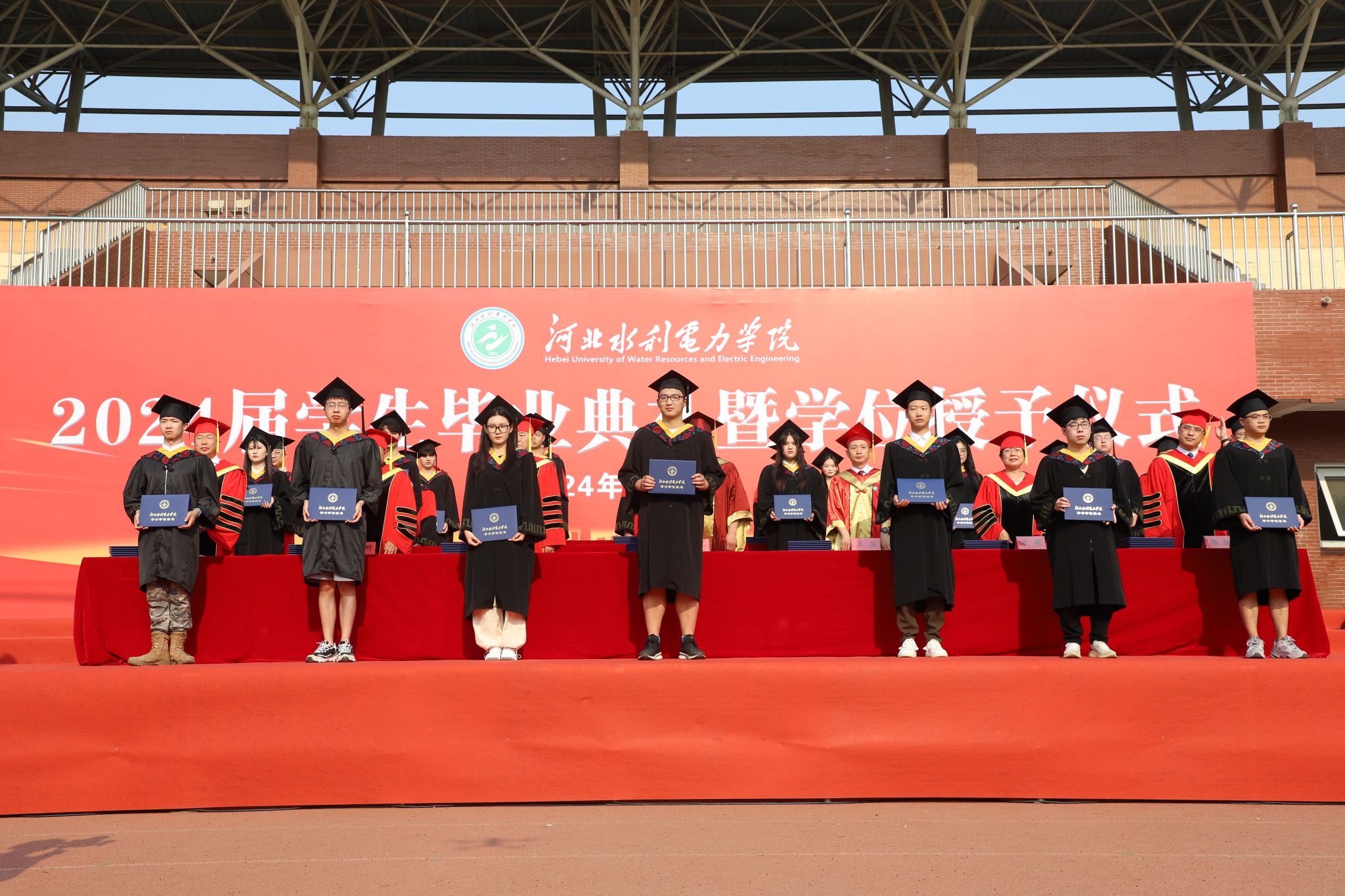王建明宣读了best365中国官方网站关于授予2024届本科生学士学位的决定。出席典礼仪式的领导、教师为2024届优秀毕业生代表拨穗正冠,颁发学位证书,并合影留念。