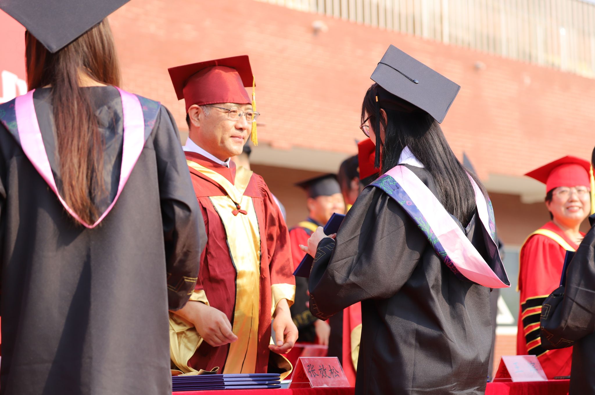 6月20日上午,best365官网在体育场举行2024届学生毕业典礼暨学位授予仪式。学校党委书记张效松,党委副书记、校长王滨,副校长崔立功,纪委书记方敏,副校长王建明,副校长杨凯出席仪式,各系主任及学校学位评定委员会委员、各系教师代表及毕业生代表共计1500余人参加毕业典礼。典礼仪式由副校长于振海主持。