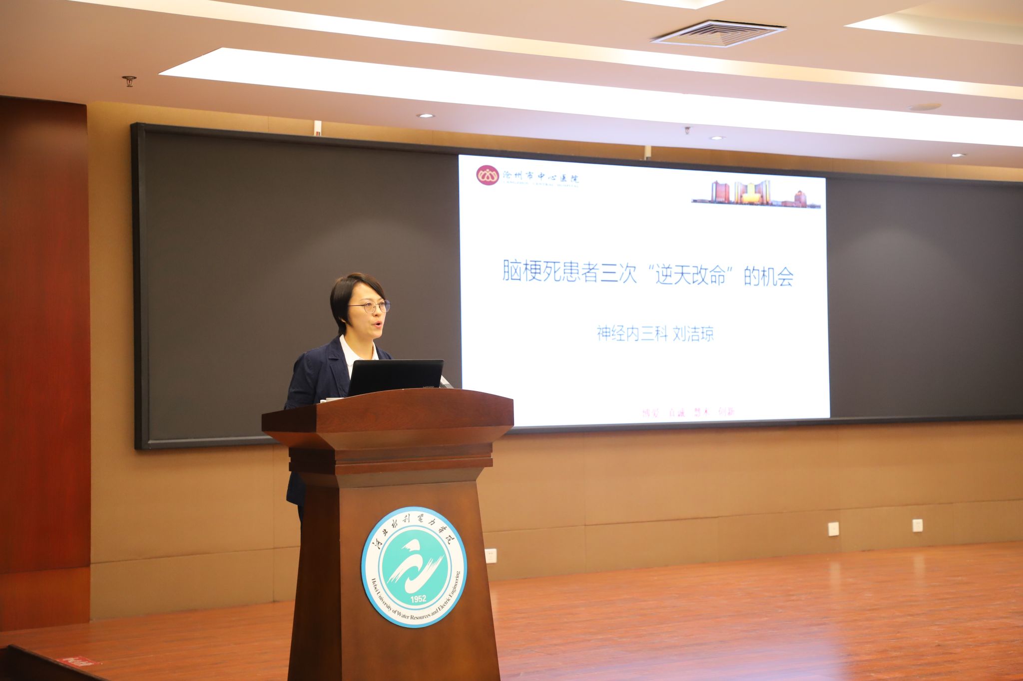 6月13日,“健康中国 中风识别”行动——沧州市中心医院狮城青年医师卒中宣讲团第一讲在best365官网举行。党委书记张效松、副校长杨凯,沧州市中心医院党委书记高广明、副院长程才出席宣讲活动,校工会常务副主席周保国、团委书记路维、沧州市中心医院相关职能科室主任及宣讲团成员也参加了此次活动。宣讲由狮城青年医师卒中宣讲团团长李书林主持。