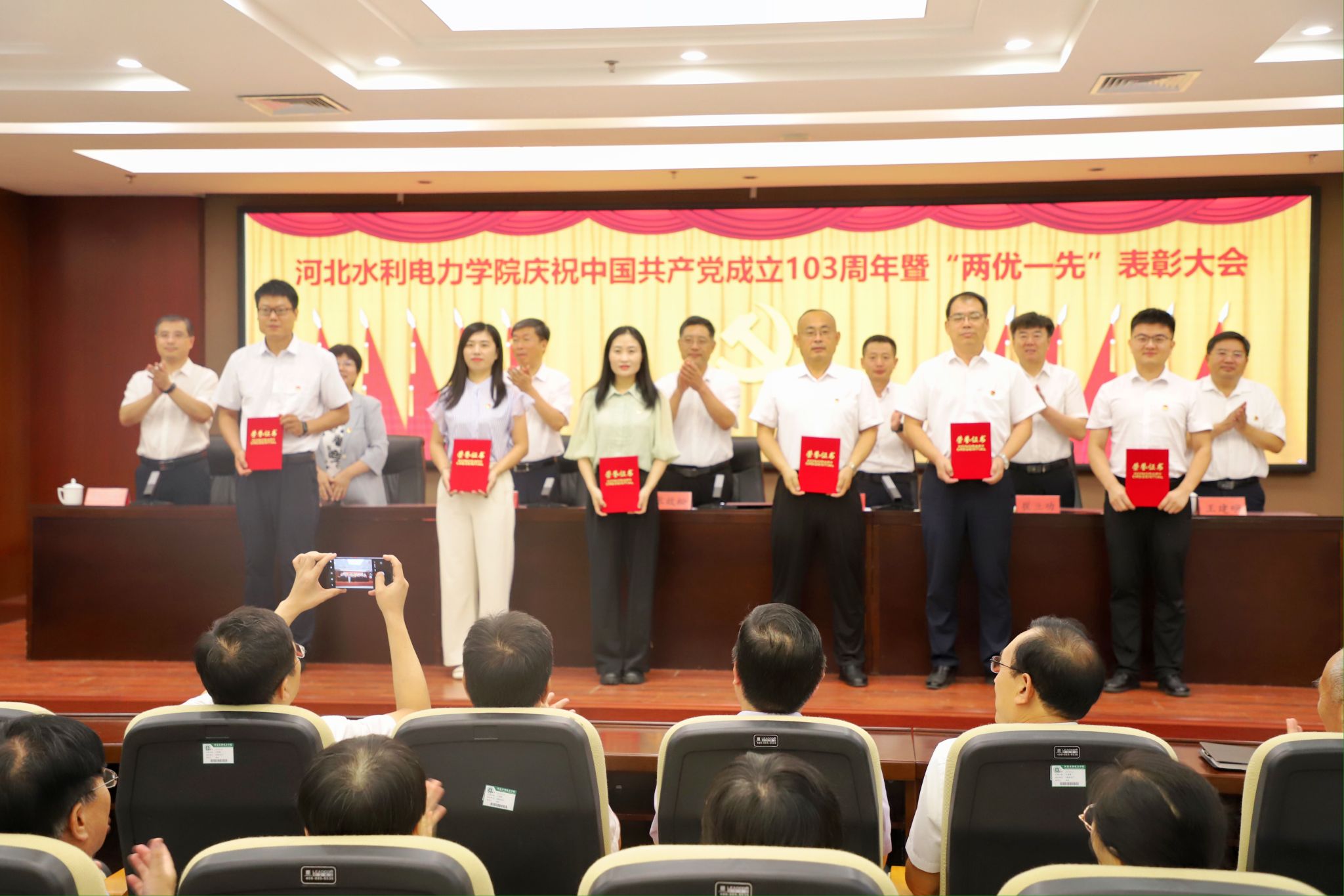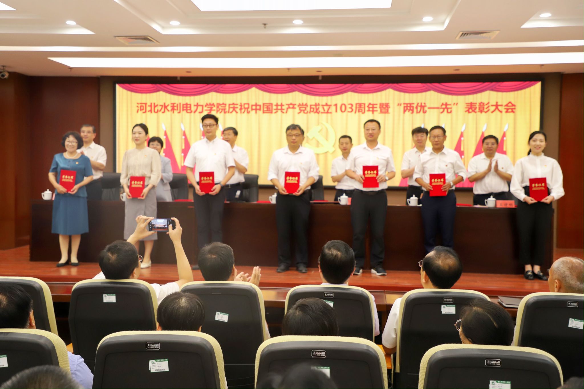 6月28日上午,best365官网庆祝中国共产党成立103周年暨“两优一先”表彰大会在弘文守正楼九楼报告厅隆重举行,学校领导班子全体成员出席会议,正处级干部、受表彰人员和党员代表参加会议。会议由党委副书记、校长王滨主持。
