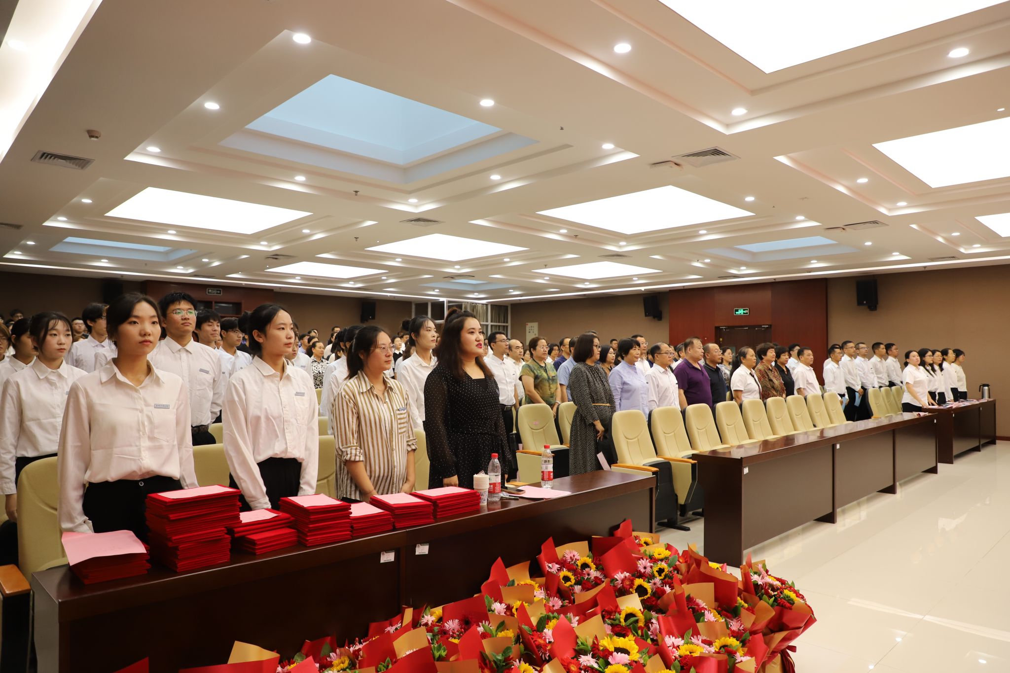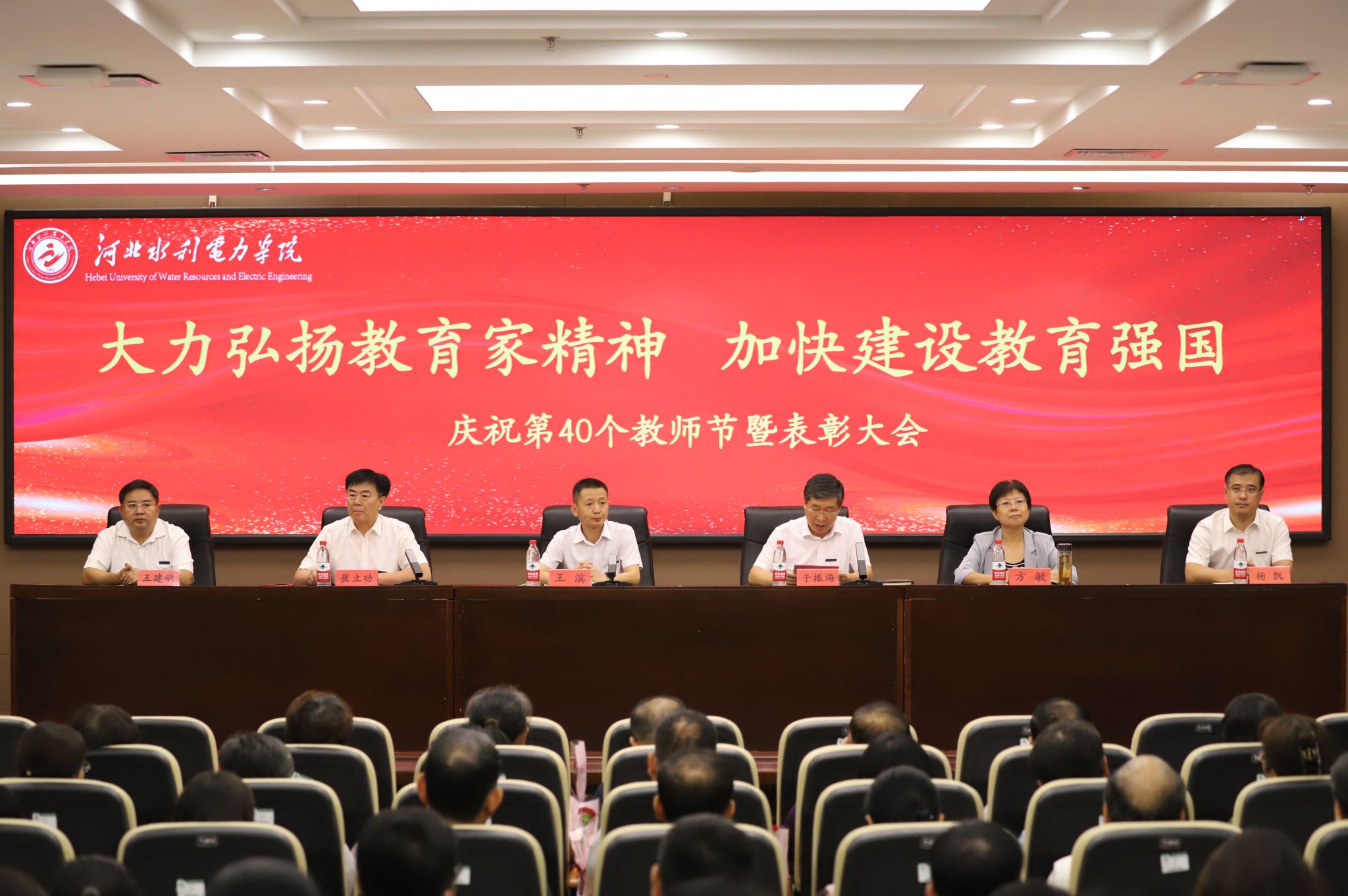 大会在雄壮的国歌声中拉开帷幕。按照会议程序,副校长崔立功宣读了表彰决定和表彰名单。校领导为受表彰的团队和个人颁发了荣誉证书。荣休教师代表、河北省教学名师、新入职教师代表和学生代表分别进行发言。新入职教师张攀博士宣读了师德承诺书,全体新入职教师现场签了师德承诺书,并在土木系教师、河北省师德标兵张云老师的带领下进行了庄严宣誓。会议现场花团锦簇,笑意盈盈,温馨而热烈,洋溢着浓浓的节日气氛。