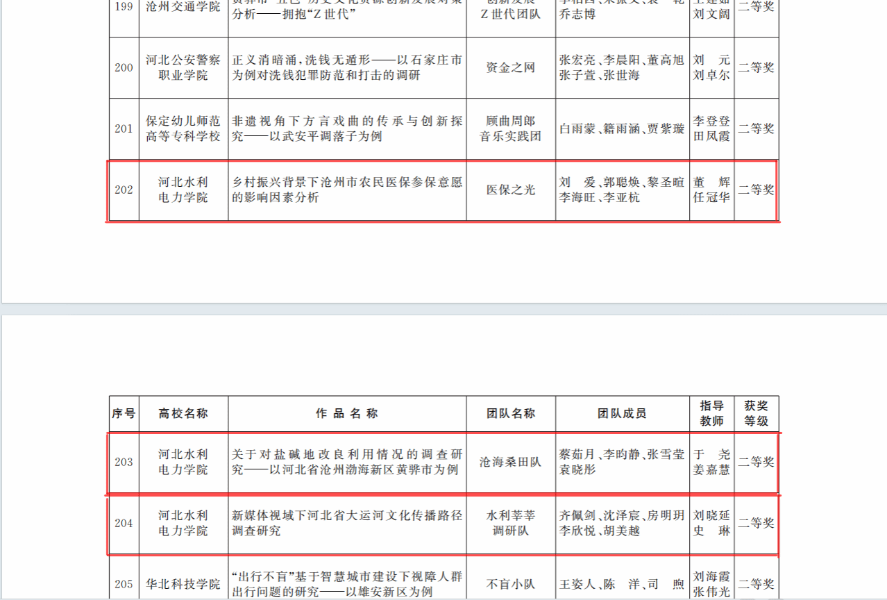 近日,共青团河北省委、河北省社会科学院以及河北省学生联合会公布了关于2023-2024年度河北省大学生“调研河北”社会调查活动情况,best365官网沧海桑田调研队《关于对盐碱地改良利用情况的调查研究——以河北省沧州渤海新区黄骅市为例》、水利莘莘调研队《新媒体视域下河北省大运河文化传播路径调查研究》、医保之光调研队《乡村振兴背景下沧州市农民医保参保意愿的影响因素分析》分别在活动中荣获二等奖,冀业探索调研队《河北省高校毕业生就业困境的调查研究——以best365中国官方网站为例》荣获三等奖。调研活动自2024年1月开展以来,校团委精心谋划部署,广泛宣传动员,吸引了本校32名教师、100多名同学参加调研,共计报送27个参赛项目,最终4个项目顺利结项并获奖。