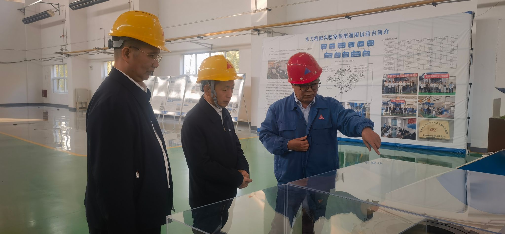 王滨一行首先参观了集团旗下核心企业-天发重型水电设备制造有限公司各生产车间、水力开发与试验中心及成果展厅,现场体验了企业严格的质量控制体系和高效的生产管理模式,感受到了天发重型水电在国内水轮发电机组设备领域的技术优势以及行业影响力。