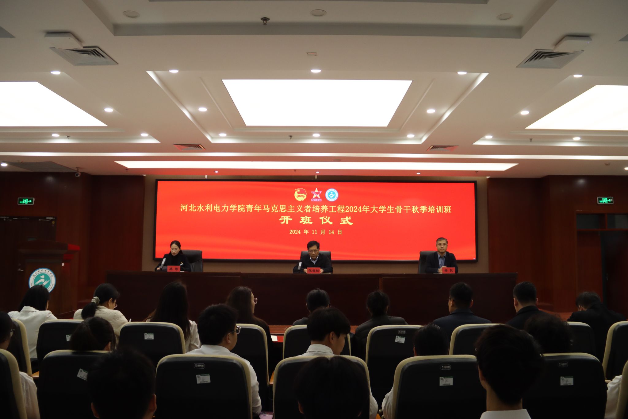 为深入学习贯彻习近平新时代中国特色社会主义思想、党的二十届三中全会精神、习近平总书记关于青年工作的重要思想,持续抓好青年思想政治引领工作,校团委于11月14日在弘文守正楼9楼报告厅举办2024年“青马工程”大学生骨干秋季培训班开班仪式。党委书记张效松、副校长杨凯出席会议,会议由校团委书记路维主持。
