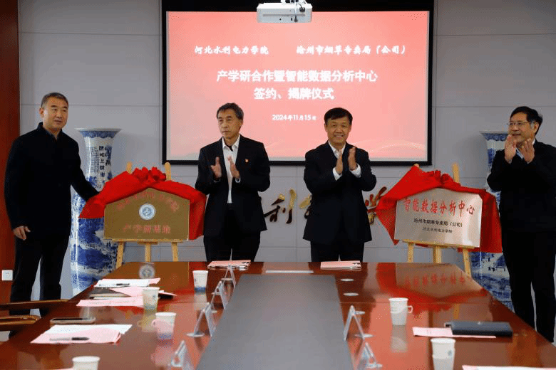 会谈结束后,双方进行了合作签约仪式及“智能数据分析中心”“产学研基地”揭牌仪式。
