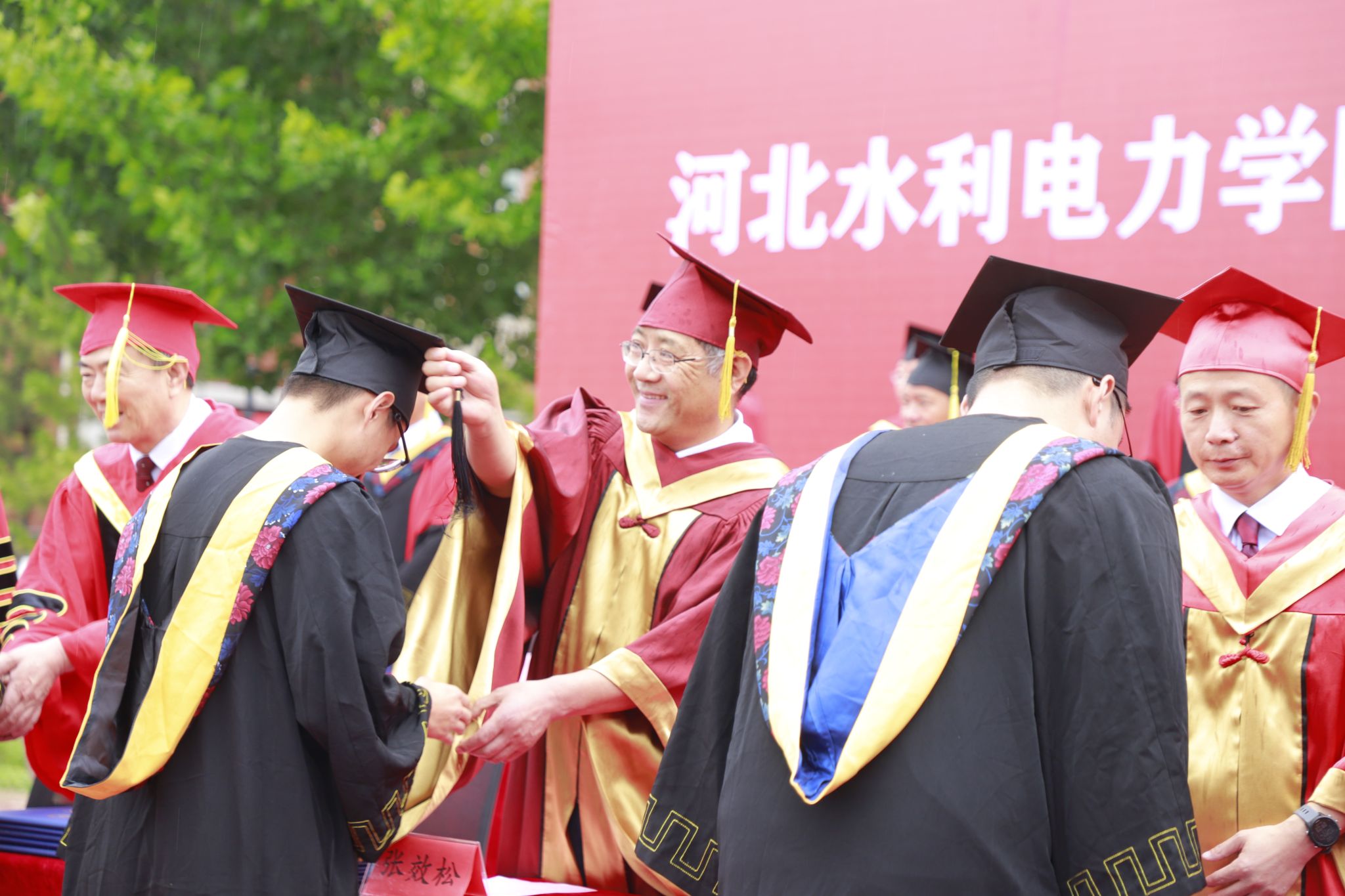 典礼上,党委副书记、校长王滨以《菁菁水院绽芳华 乘势扬帆启新程》为题发表了热情洋溢的讲话。他代表学校向2685名2025届毕业生圆满完成学业表示热烈的祝贺,回顾了毕业生们在校期间的点点滴滴,肯定了大家的努力与进步,并从“一是你我向上,家国向前——希望你们永远胸怀家国,将个人奋斗汇入时代洪流。二是学而不止,行以致远——希望你们永远勤学不怠,在社会大课堂求知探源。三是百舸争流,奋楫者先——希望你们永远砥砺奋斗,在时代最前沿百炼成钢。”等三个方面对毕业生们提出了殷切期望和谆谆教诲,希望毕业生们在变革的时代把握好人生前行的方向,既要仰望星空、志存高远,把爱国之情、报国之志与个人理想抱负紧密结合,在服务国家发展和人民福祉的实践中彰显青春风采、贡献青春力量;也要脚踏实地、行稳致远,保持乐观积极、包容豁达的心态,勇于做困难而真正有价值的事,不过分在意一时之快慢、一事之成败,坚持在运动中保持健康、在阅读中丰盈内心、在交流中拓宽视野,以美好自我创造出更加美好的未来。