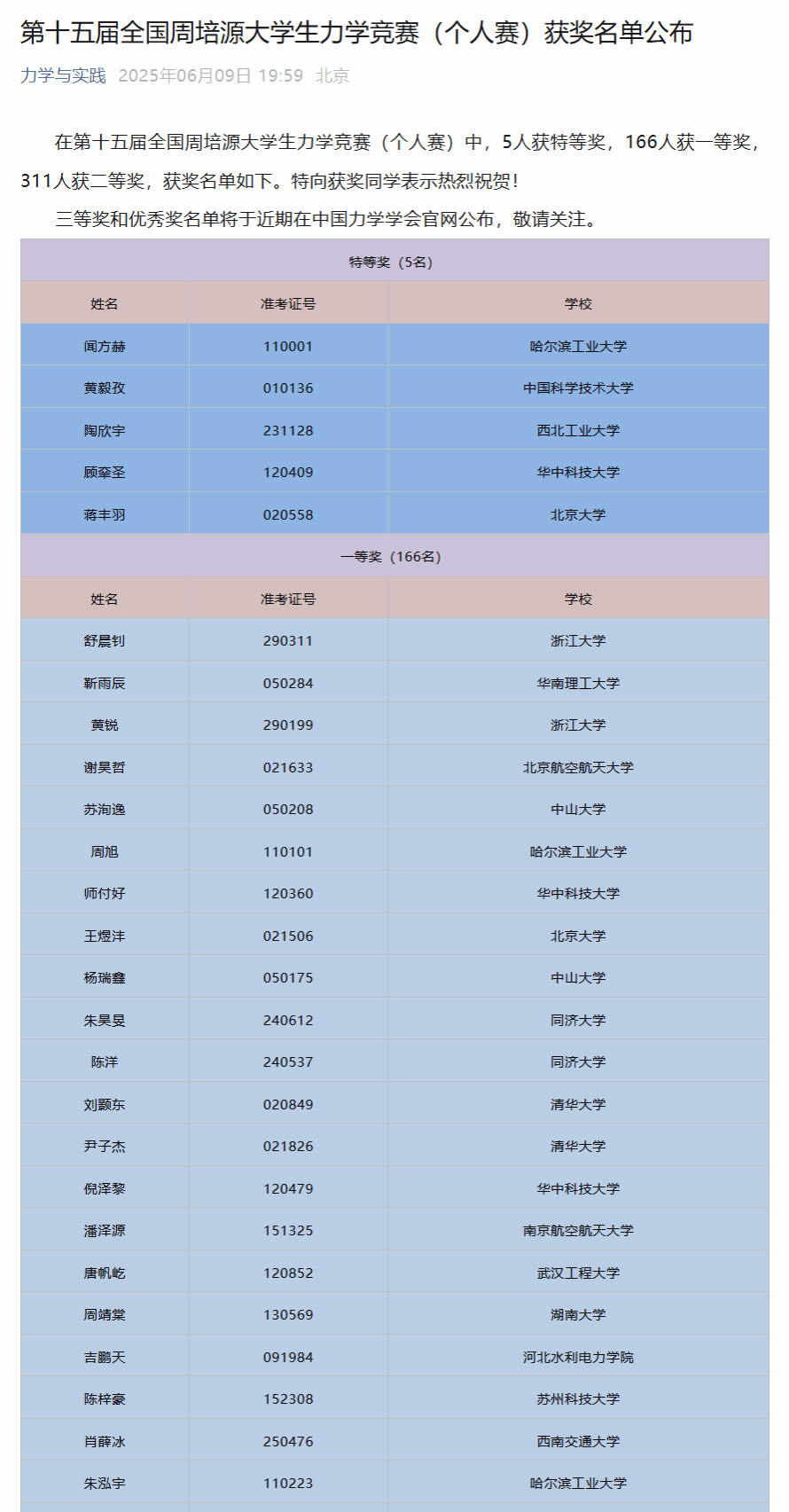 近日,第十五届全国周培源大学生力学竞赛结果正式揭晓。best365官网学子表现卓越,首次摘得全国一等奖桂冠,取得历史性突破,彰显了学校基础力学教学的扎实功底,呈现了best365官网学生创新实践教育的硕果。