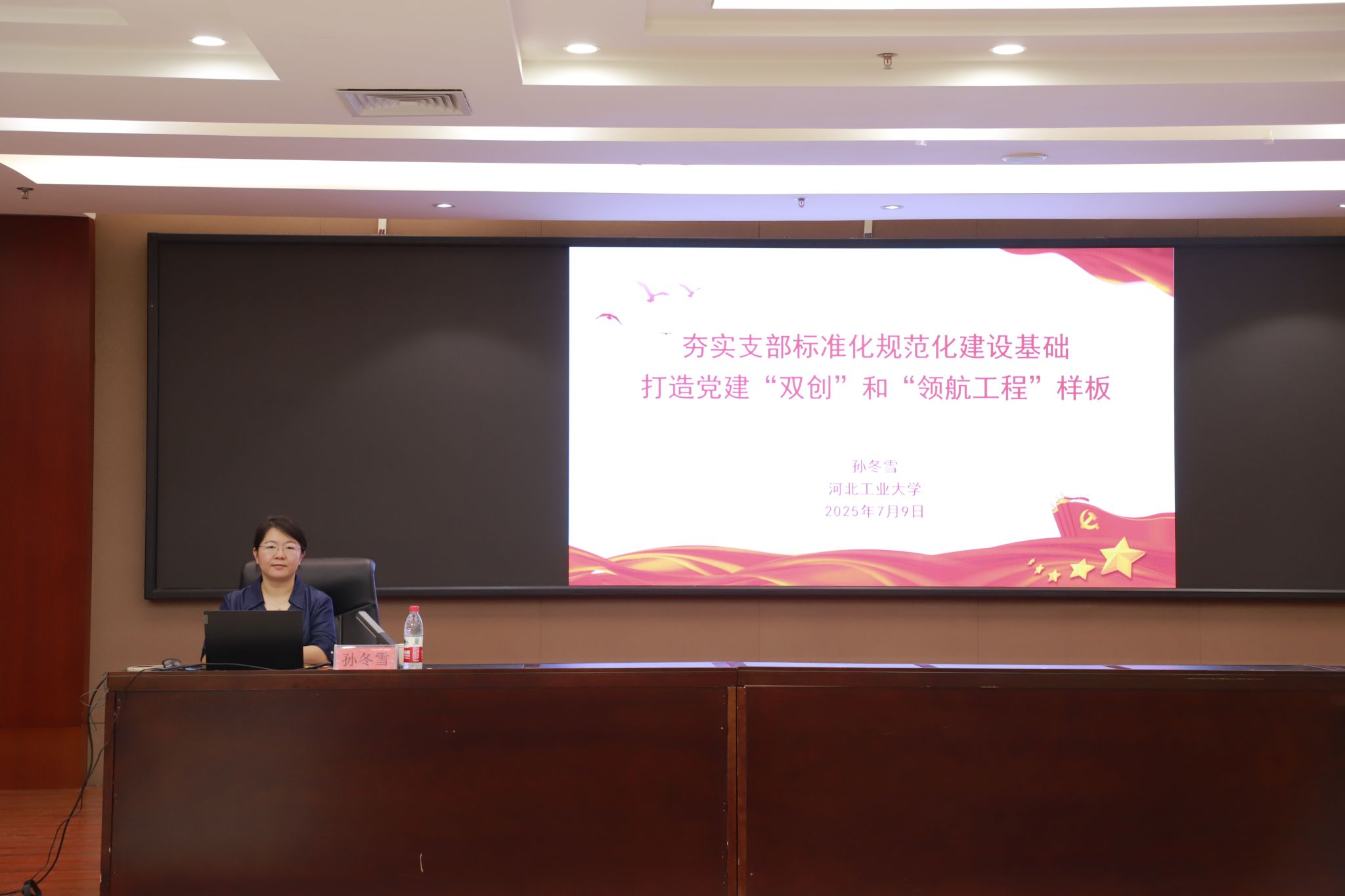 全国样板支部支部书记、河北工业大学党委组织部科长孙冬雪作了题为“夯实支部标准化规范化建设基础,打造党建双创和领航工程样板”的讲座,聚焦党支部建设的关键环节,系统解析了“党支部标准化规范化建设”“党员发展与教育管理”“三会一课”等组织生活制度落实以及“党建双创典型经验”四个核心内容。讲座深入分享了打造高质量样板支部的实践路径与宝贵经验,为提升best365官网基层党建工作科学化、规范化水平提供了坚实的理论支撑和实践范例。