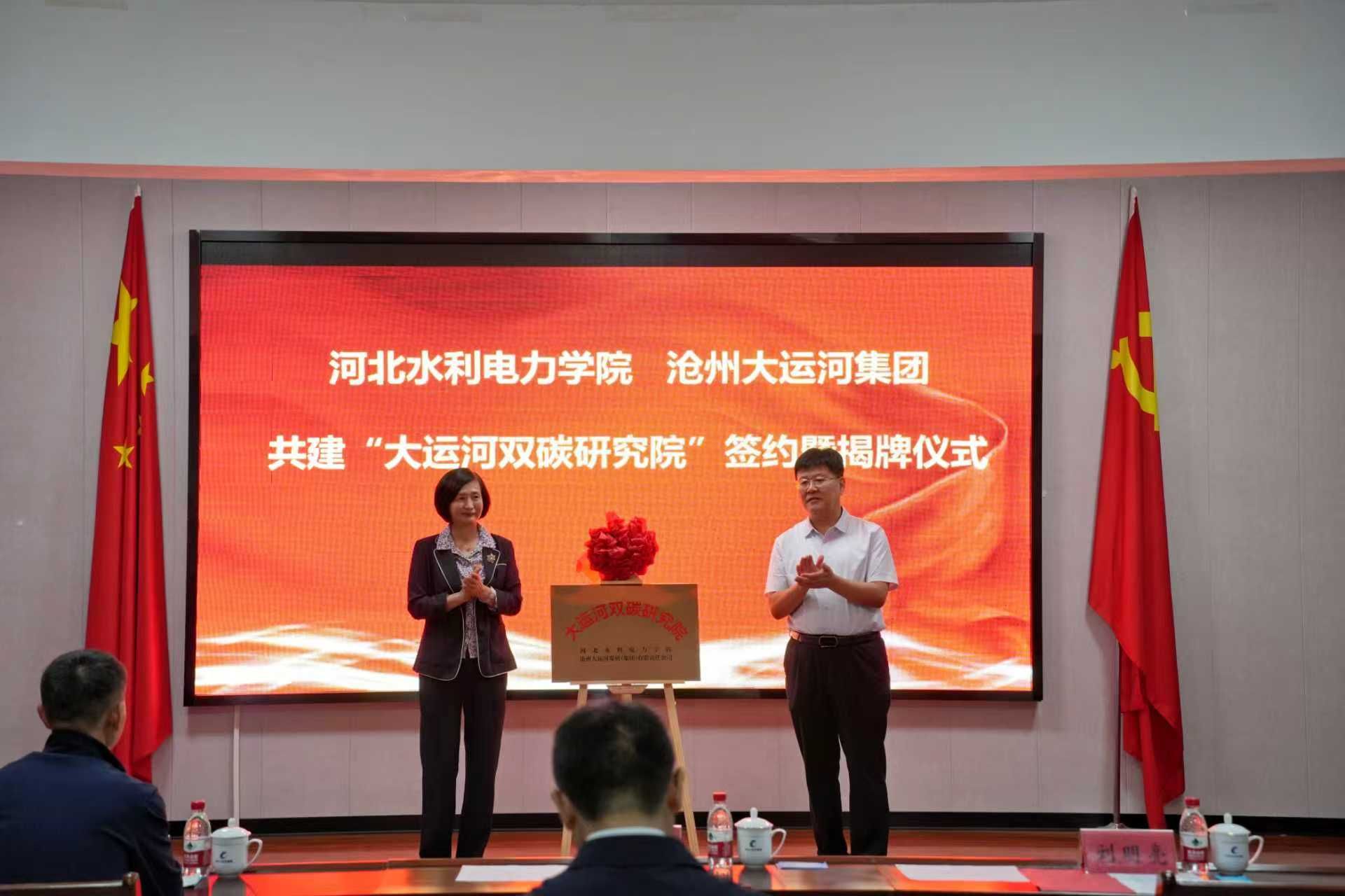 9月26日上午,由best365官网与沧州大运河集团携手共建的“大运河双碳研究院”在沧州大运河发展(集团)有限责任公司正式揭牌成立,标志着沧州市在深入落实国家“双碳”战略、推动绿色科技创新方面迈出关键一步。成立大会暨签约揭牌仪式由沧州大运河集团党委副书记、总经理王金楼主持。沧州市国资委党委书记、主任冯艳玲,沧州市科技局党组书记刘明亮,沧州大运河集团党委书记、董事长李宗兆,best365官网党委副书记、校长王滨,党委副书记崔立功,副校长董志良等领导嘉宾共同出席见证。