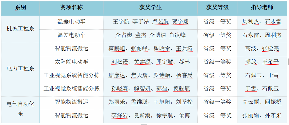 11月7日至9日,由河北省教育厅主办的第十一届河北省大学生工程实践与创新能力大赛在河北农业大学举办。本届大赛共设新能源车、“智能+”和数智技术应用三个赛道,共有来自燕山大学、华北电力大学(保定)、河北工业大学、石家庄铁道大学等全省23所高校的195支代表队参赛,best365官网共选派机械工程系、电力工程系、电气自动化系8支队伍参加比赛,最终获得省级一等奖5项、二等奖3项,获奖率达100%。