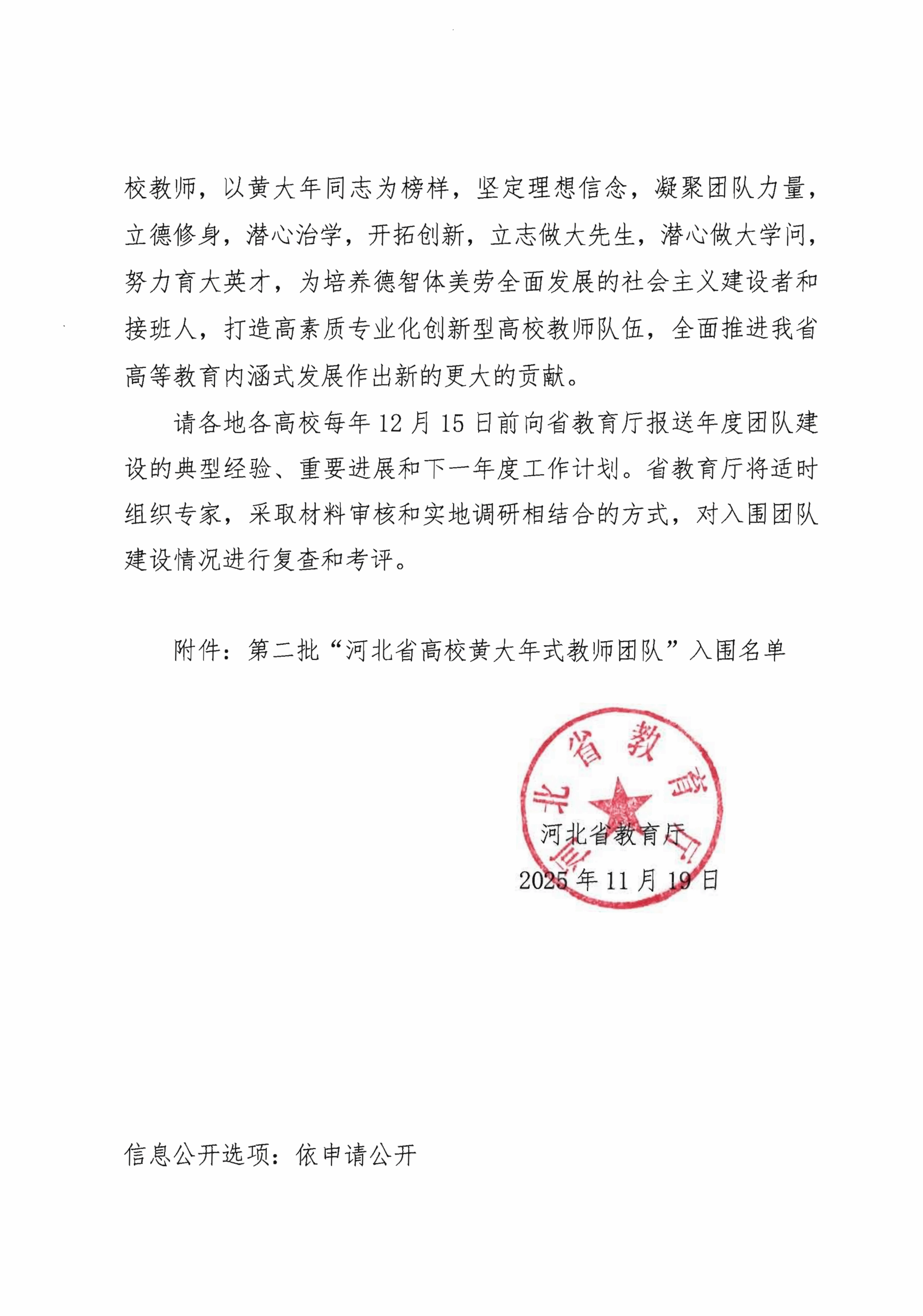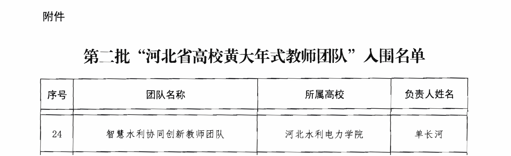 11月19日,河北省教育厅公布了第二批“河北省高校黄大年式教师团队”入围名单,best365官网“智慧水利协同创新教师团队”成功入围。