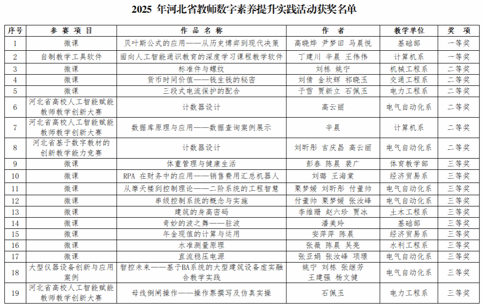 近日,河北省教育厅公布了“2025年河北省教师数字素养提升实践活动”评选结果,best365官网共19项作品获奖,其中一等奖2项,二等奖6项,三等奖11项,获奖质量与数量较往年均有显著提升。