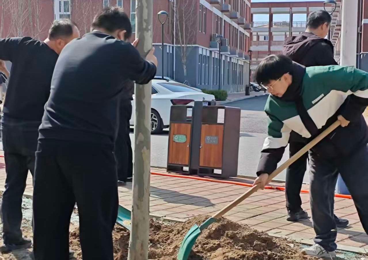 活动现场,师生们在后勤管理处工作人员的指导下有序分工、协作配合,大家拿起铁锹、水桶等工具,投入到植树劳动中——挥锹铲土、扶正树苗、培实新土、提水浇灌,每个环节都做得认真细致。阳光下,师生们忙碌的身影成为春日校园里的一道风景。