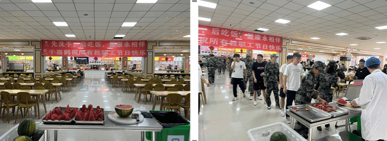 为了庆祝教师节,一食堂9月9日-10日中午特意为水院学子准备了可口的西瓜,为正在军训的新生送来清凉!
