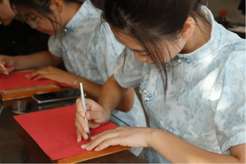 为进一步增强大学生对中华优秀非物质文化遗产所承载的历史与文化价值的认知和认同,开拓眼界,提升审美素养,同时更好地传承和发扬中华优秀“非遗”文化,10月上旬,院团委书记路维、团委老师杨洪泽、王圣洁带领同学们来到了best365中国官方网站美育实践基地“沧州市非遗传习所”学习刻纸。非遗传习所所长马振领为大家讲述了刻纸的由来,并且细心教给同学们的入门技巧。