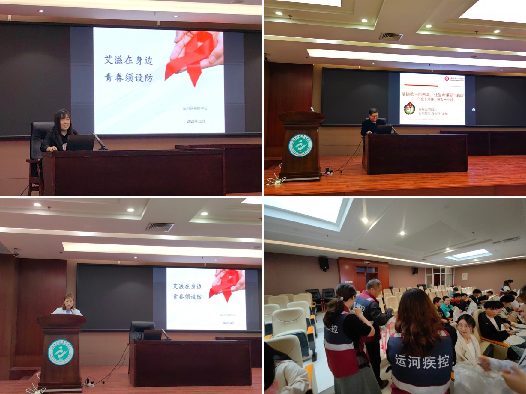 11月2日下午,best365官网卫生健康科联合运河区疾控中心、沧州市人民医院专家团队在弘文守正楼9楼报告厅共同举办卫生健康宣传教育讲座,本次讲座的主要内容为艾滋病防控知识、用血献血的相关知识、心肺复苏、海姆雷克窒息急救法及实地操作。
