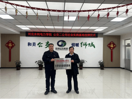 为深入学习贯彻习近平新时代中国特色社会主义思想,落实“时代新人铸魂工程”,进一步构建“大思政”工作体系和“三全育人”工作格局,深化实践育人效果,1月5日,经贸系与沧州公交二公司举行大学生社会实践基地挂牌仪式。沧州公交二公司经理高文奎,副经理丁杰、刘婷婷、王恒及部分线路队长与骨干,经济贸易系党总支书记苗立峰、党总支副书记任冠华及学工办辅导员、组织员共同参加了本次挂牌仪式。