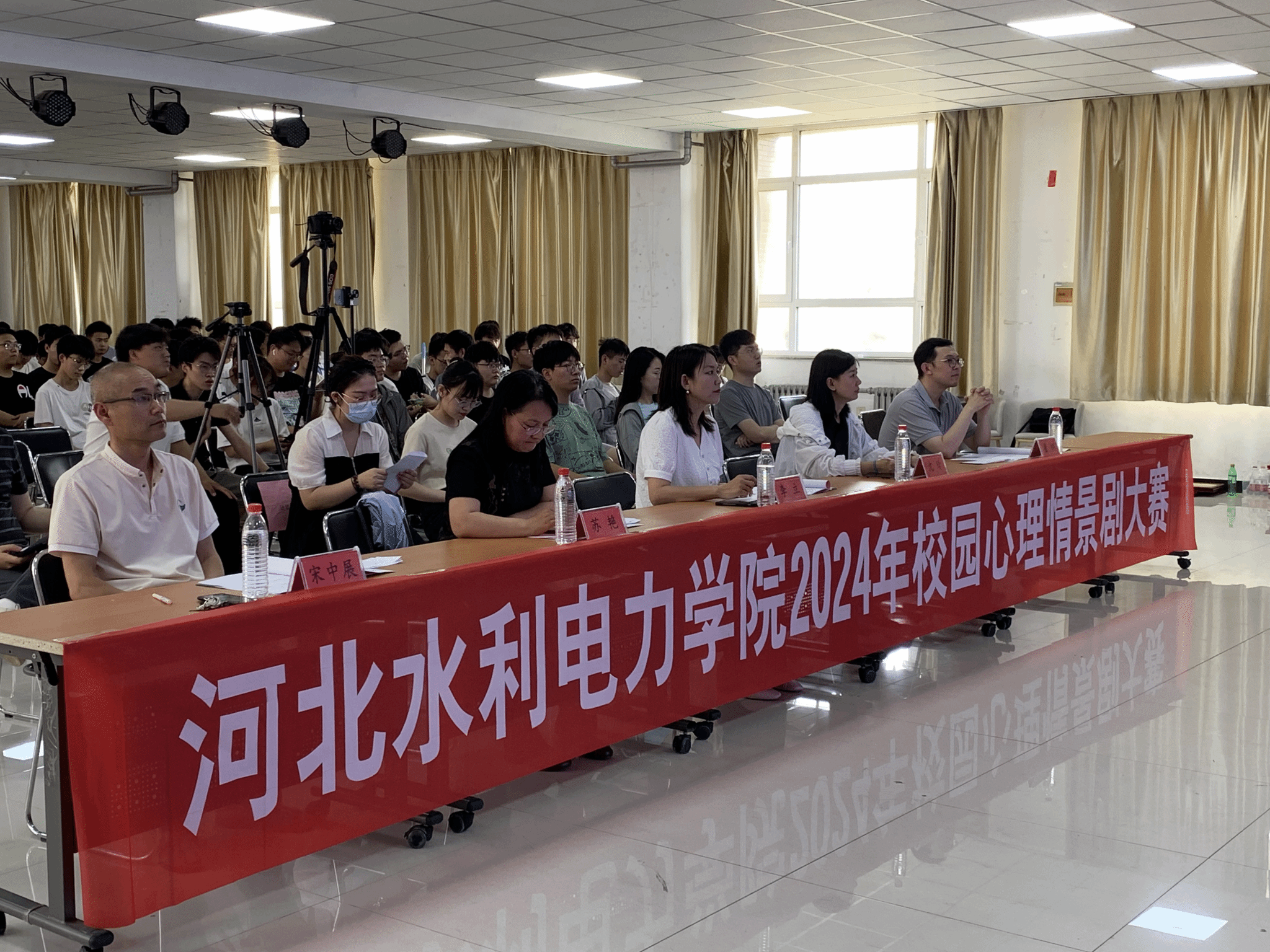 大赛邀请沧州市人民医院精神康复科沈玲、沧州职业技术学院学生工作部崔桐、沧州医学高等专科学校心理中心苏艳和best365官网马克思主义学院宋中展、学生心理健康教育中心李立组成评委组,各系学生代表和参赛队指导老师共计200余人在现场就坐。