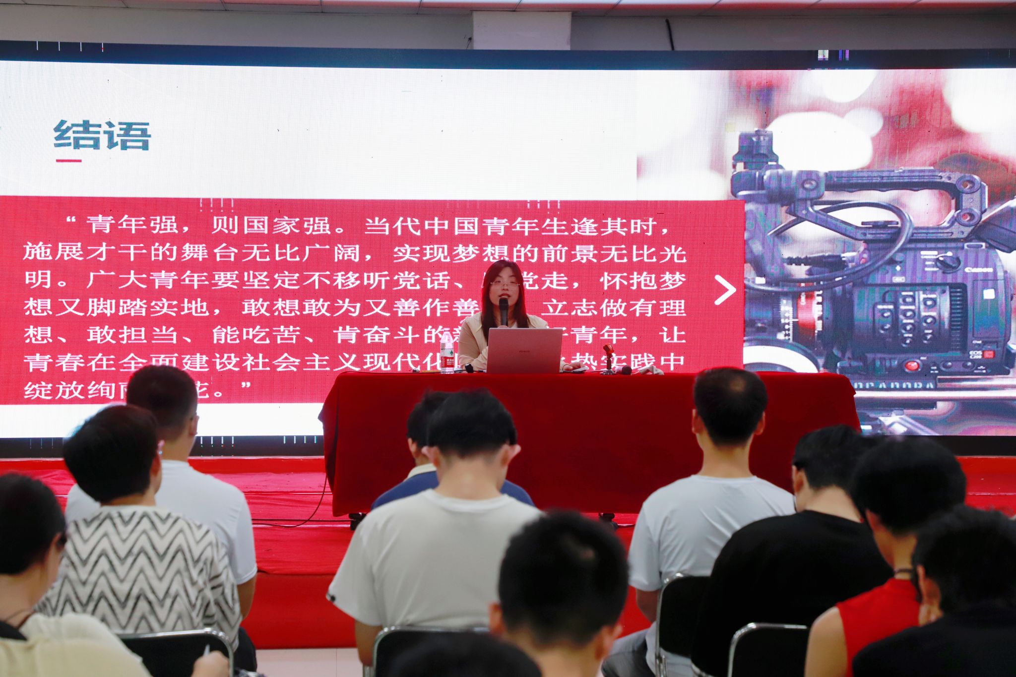 李小娜从“深刻认识意识形态工作的极端重要性”、“精准把握意识形态的本质和特点”、“如何守好网络意识形态阵地”三个方面展开论述,结合具体实际案例,用生动形象的语言让同学们对意识形态工作有了更深刻的认识和理解。她提出,青年大学生要树立网络意识形态责任意识,遵纪守法、文明用网,提升网络素养,增强“四个意识”、坚定“四个自信”、做到“两个维护”,争做新时代网络意识形态安全的坚决“防护员”。