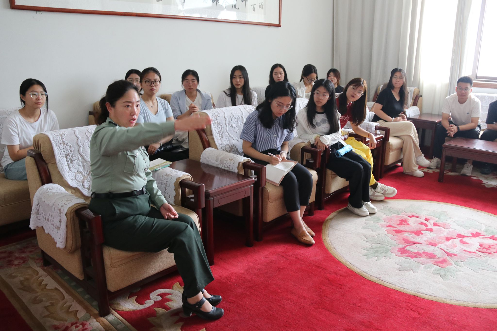 7月7日,师生来到西柏坡镇,共同参观了西柏坡纪念馆,深入学习了平山地区党组织建设情况以及当地群众追随共产党走遍全国投身革命的献身精神和对党忠诚矢志不渝的坚定信念。最后,校史宣讲团师生还邀请教育基地高级讲解员老师从红色历史讲解技巧、注意事项、个人修养提升等方面分享了经验。