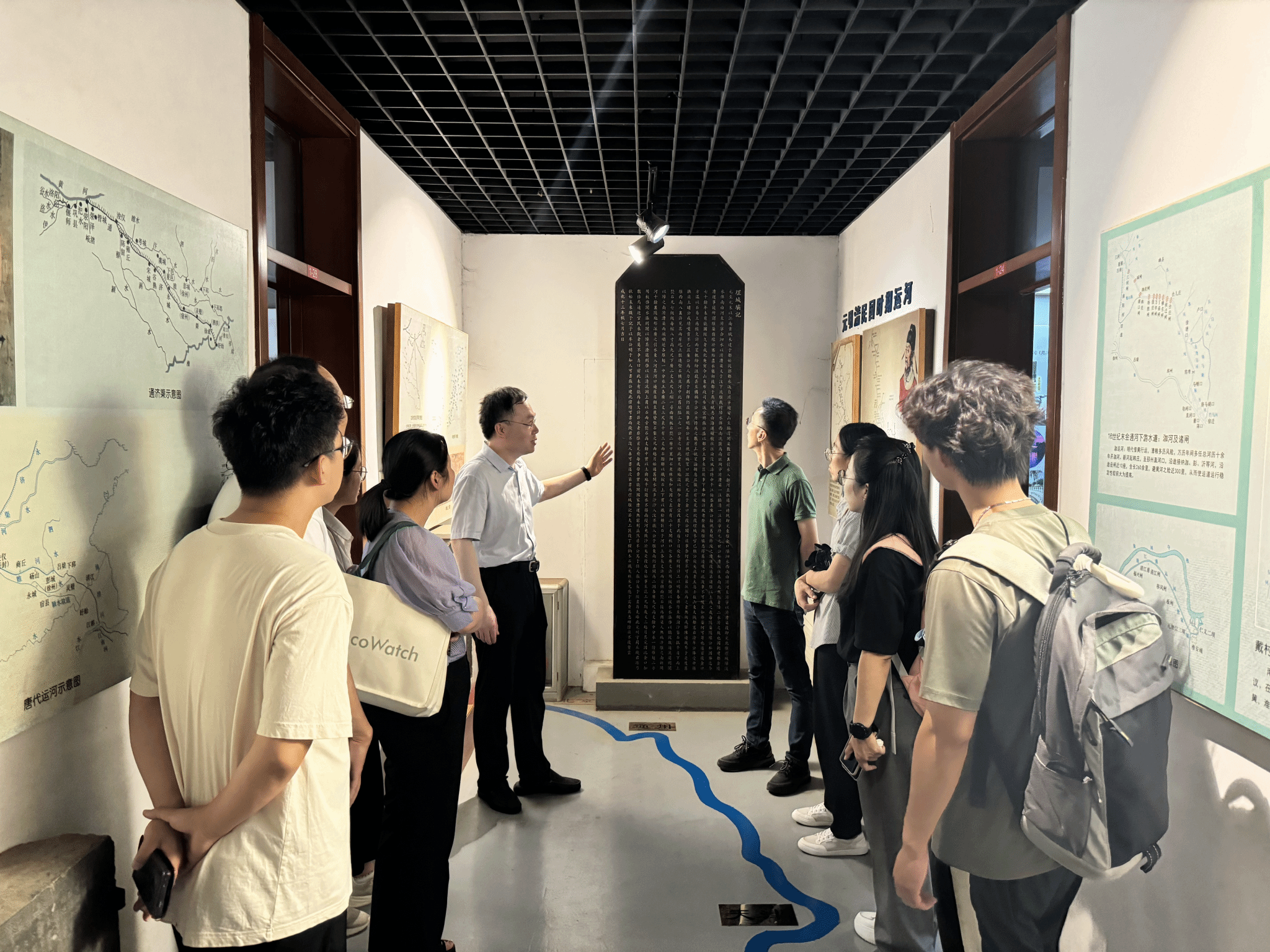 科技工作者们参观了聊城大学校内的中国运河文物文献展览馆,仔细观赏了展览馆内的珍贵文物、历史文献、碑文拓片,认真聆听了聊城大学运河学研究院周广骞老师的讲解与介绍,对运河水利文化的内涵与价值有了更深刻的认识与理解。