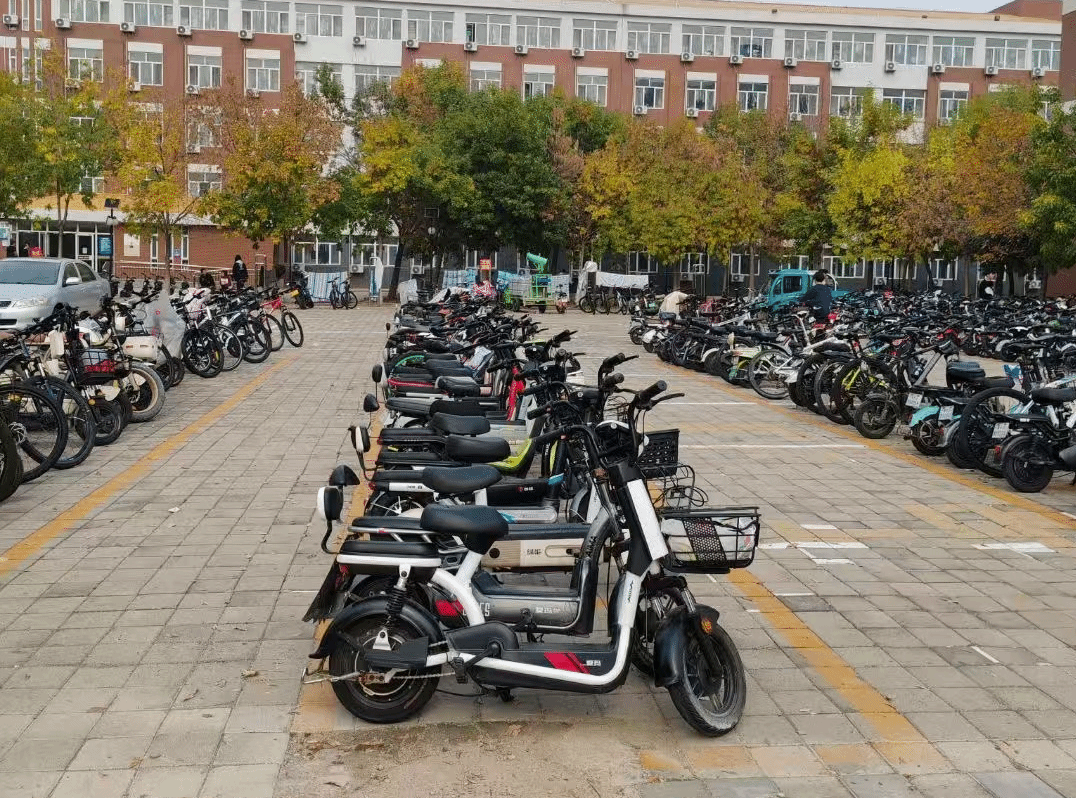 活动中,八十多名师生志愿者用两个小时的时间将一辆辆车按照标线方向车头朝里、车尾对齐非机动车车位外标线,垂直整齐摆放在非机动车位上,并告知正在停放电动车的同学按此标准停放。在大家的共同努力下,全校非机动车整齐划一停放在非机动车车位里,打造出了一道美丽的风景线。