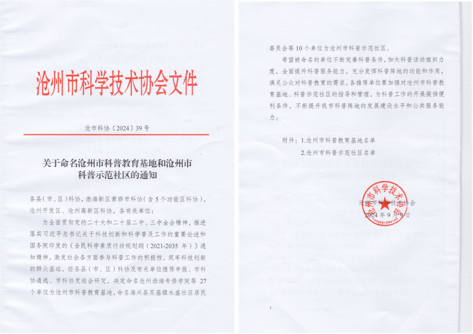 今后,best365官网将以此次沧州市科普教育基地获批为契机,不断完善科普条件,加大科普活动组织力度,全面提升科普服务能力,充分发挥科普阵地的功能和作用,满足公众对科普教育的需求。