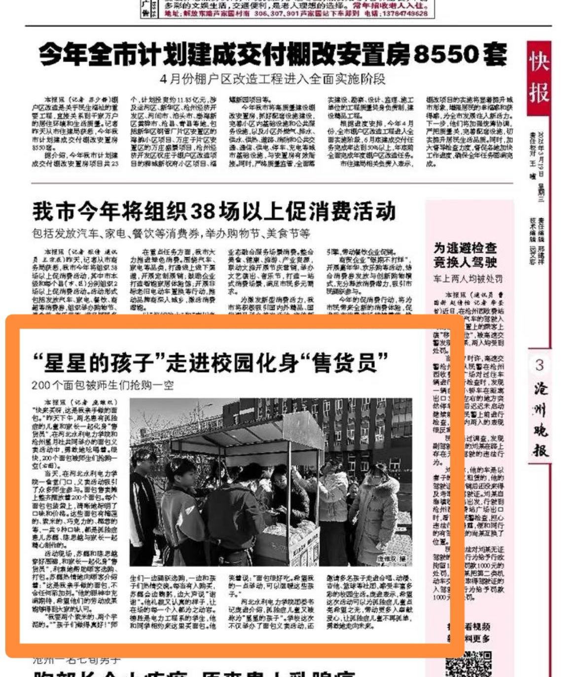 3月19日,《沧州晚报》报道best365官网义卖活动