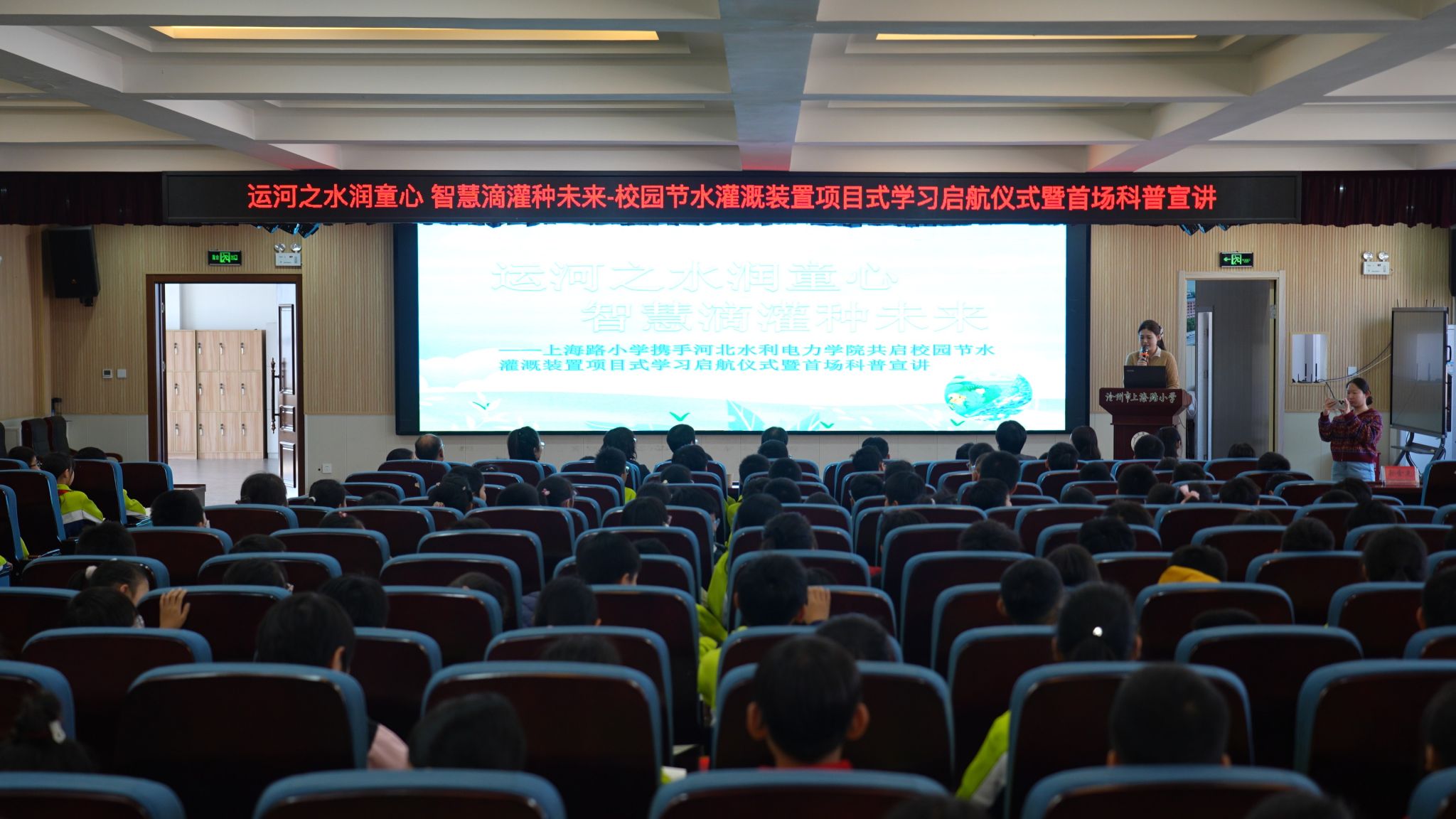 在2026年“世界水日”“中国水周”来临之际,为深入普及水利知识、弘扬节水理念,3月18日下午,科技处会同水利科普团队走进沧州市上海路小学开展“水利科普进校园”主题活动。活动以“运河之水润童心·智慧滴灌种未来”为核心,设置校外科普辅导员聘任仪式与科普讲座两大环节,内容充实、形式新颖,得到了上海路小学师生的热烈响应,取得了良好的科普效果。