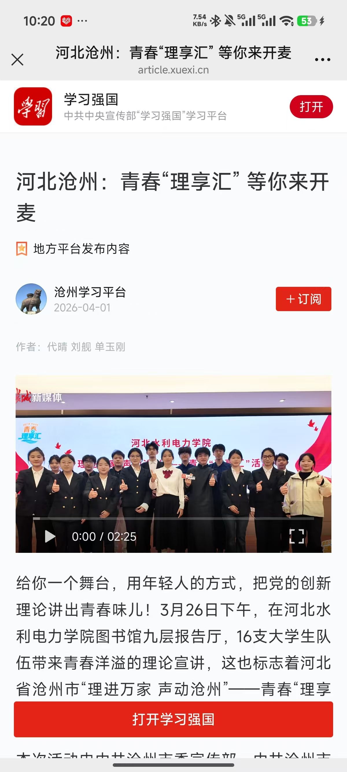 新闻链接:https://article.xuexi.cn/articles/index.html?art_id=627937098975118289&cdn=https%3A%2F%2Fregion-hebei-resource&item_id=627937098975118289&study_style_id=feeds_opaque&t=1775053217150&showmenu=false&ref_read_id=06400f00-4b1f-4476-8115-e1849ac06b94_1775122848009&pid=&ptype=-1&source=share&share_to=wx_single#search_qid=b33b8c35(“学习强国”学习平台)